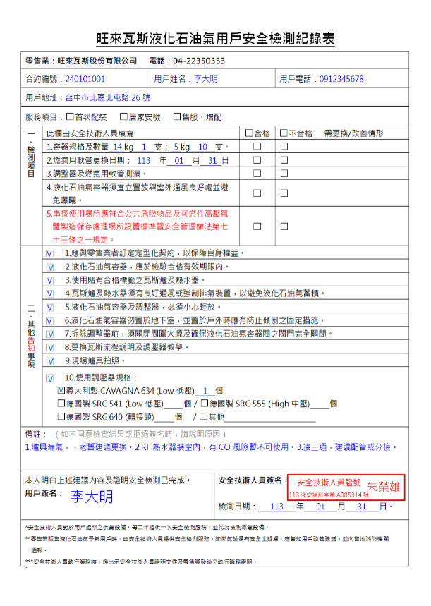 或撥打旺來瓦斯客服專線:市話|0800-505053;手機|04-22357272,