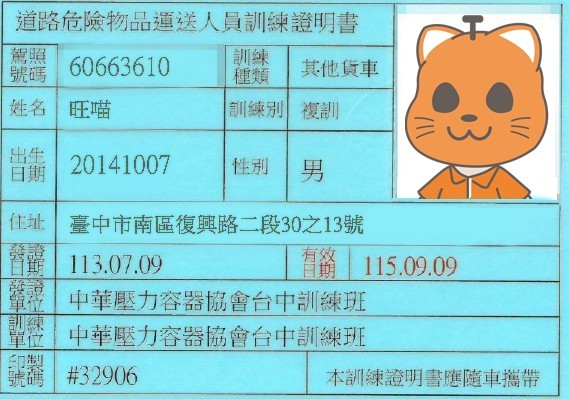 危運執照司機